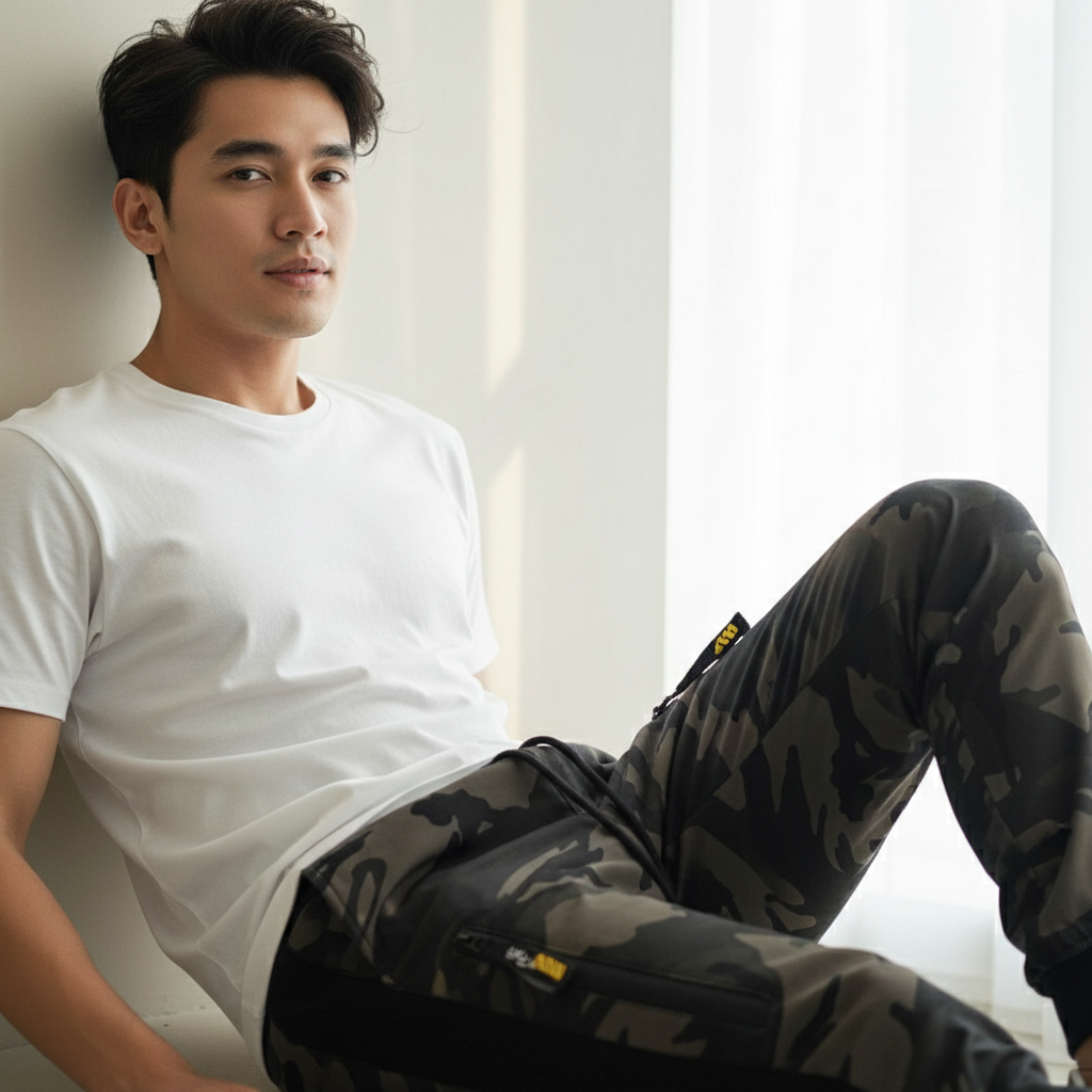• Tampil maskulin dan gagah dengan motif army trendi untuk gaya kasual maksimal.